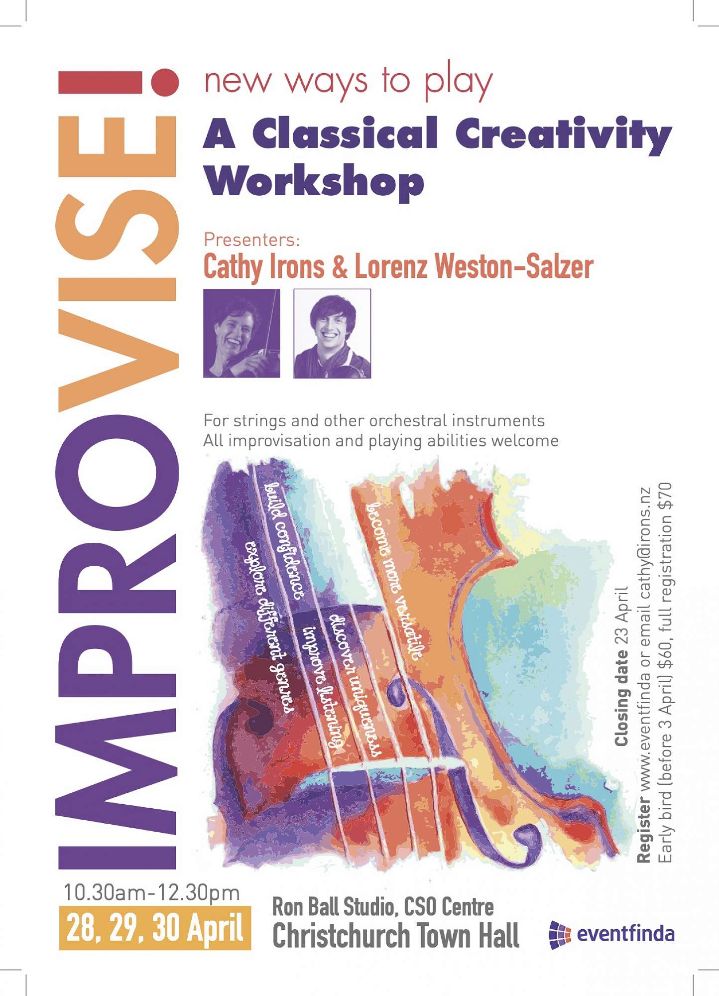 Cathy Irons’ music improvisation workshop opportunity for young musicians playing violin and other instruments.